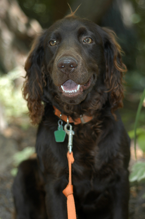 Fen came to see Dr. Edinger in January 2010 because of sudden right rear limb lameness after playing fetch. He was a very active 2 year old Boykin Spaniel and loved running and hunting at home. He had previously had some trouble with the left knee, but it seemed to go away with rest and activity restrictions.