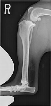 A thorough physical examination showed signs of positive cranial drawer and tibial thrust (unnatural movement) in the right knee. He was sedated and radiographs were taken, which showed arthritic changes in both his knees.